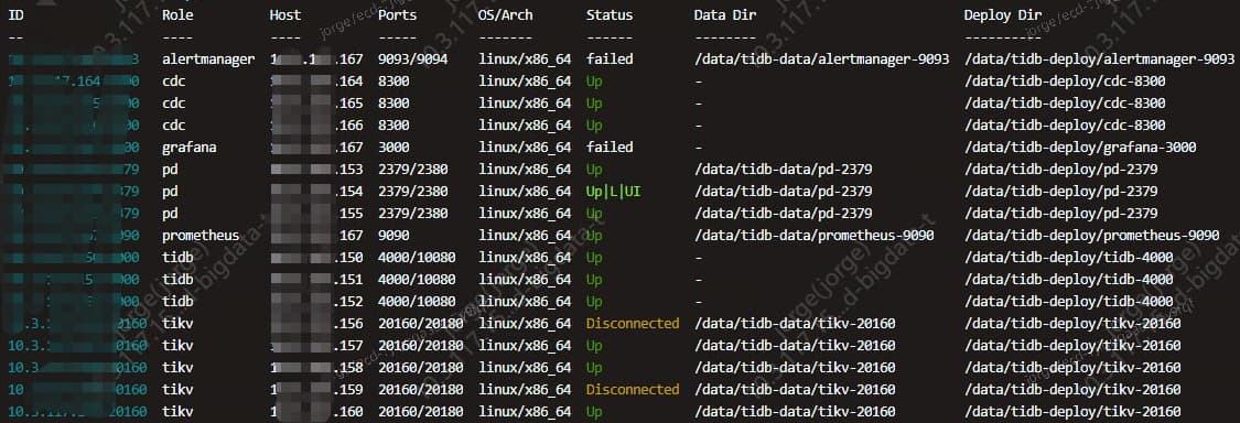 查看tidb集群tikv如下图: