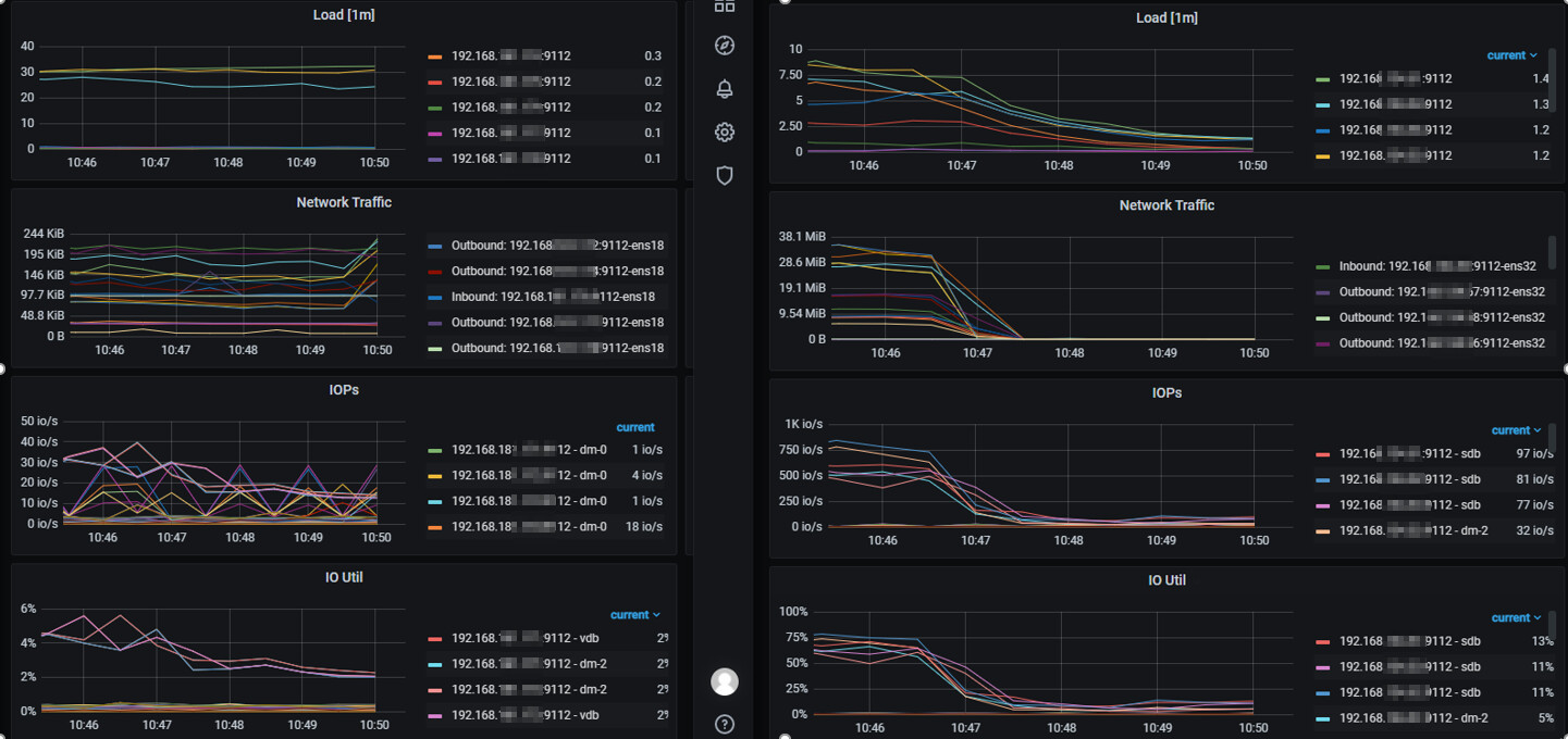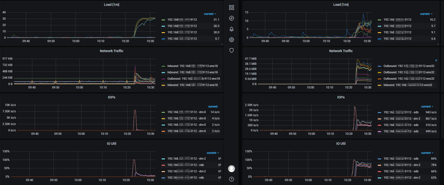 3、观察iops监控发现tpcc压测时信创环境约为40 io/s,旧环境可以达到750io/s