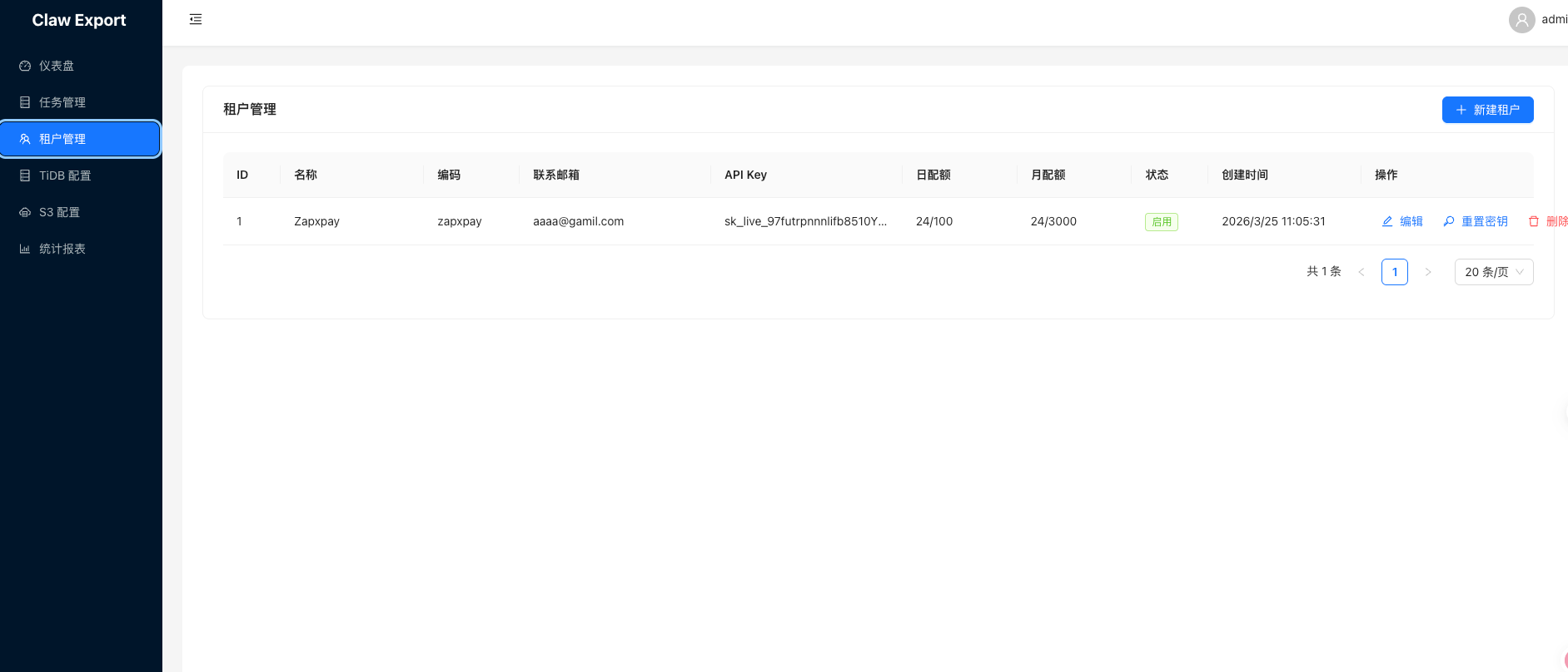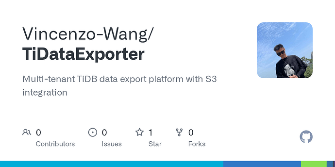 一个基于 Dumpling 的多租户 TiDB 数据导出平台,支持将数据导出到 S3 兼容存储,并且提供对外API。