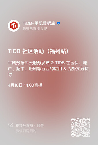 线上:欢迎关注 TiDB-平凯数据库 视频号