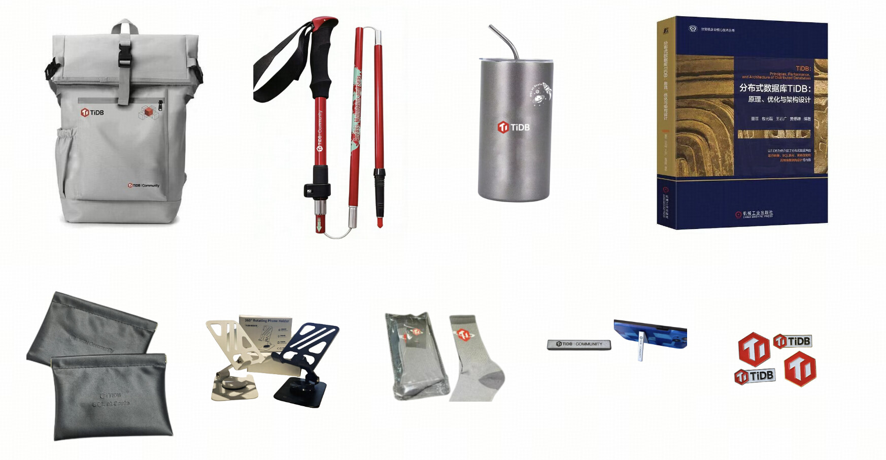 - 签到环节到场参与互动游戏即可赢取 TiDB 社区多款重磅周边:双肩包、登山杖、咖啡杯、手机支架、《分布式数据库 TiDB:原理、优化与架构设计》书籍等