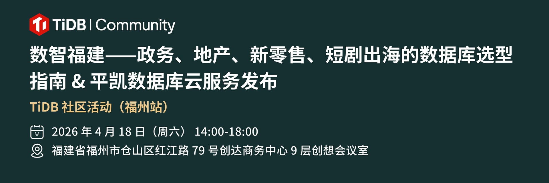 4 月 18 日,TiDB 社区活动将落地有福之州啦!