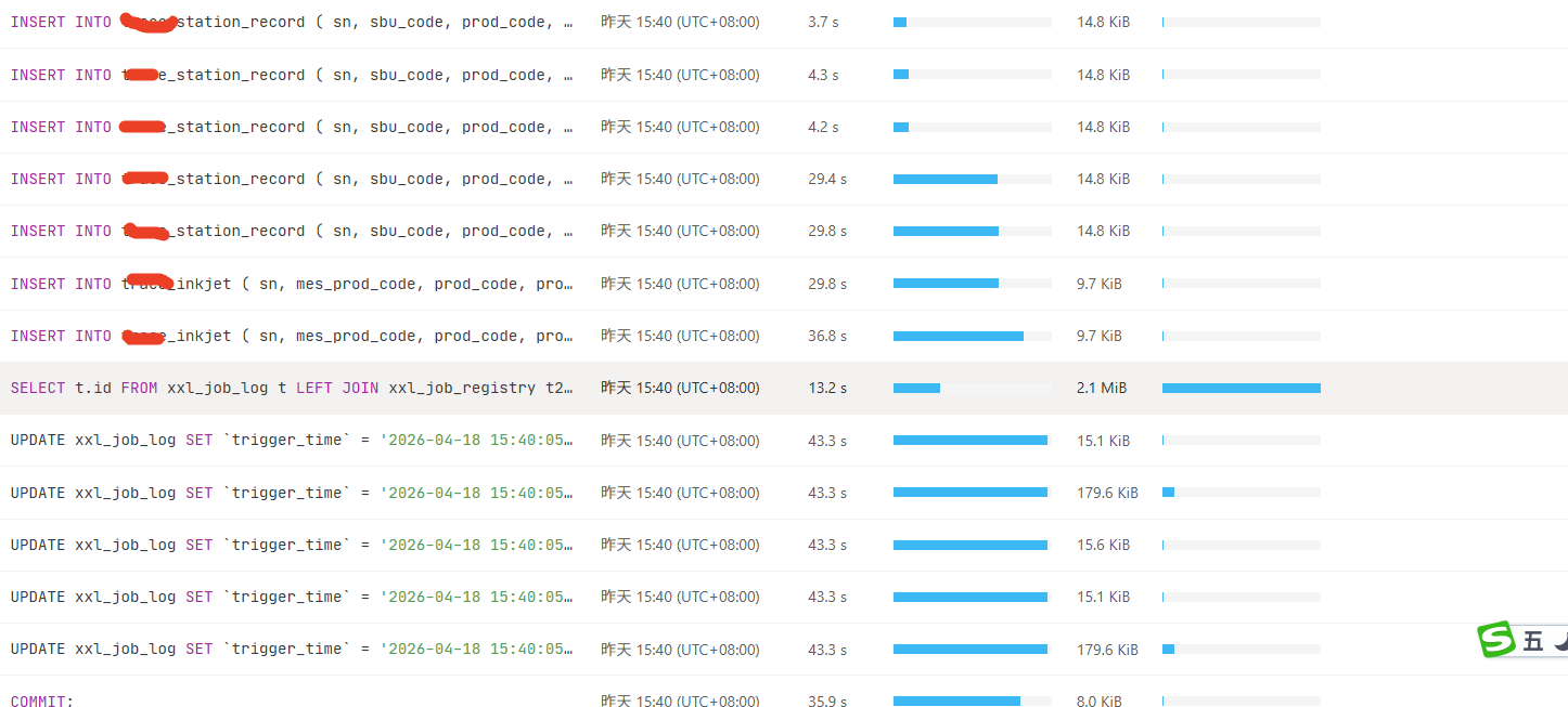 【遇到的问题:问题现象及影响】突然大量Insert和update变慢,都有30-40秒,引发报警,2分钟后恢复