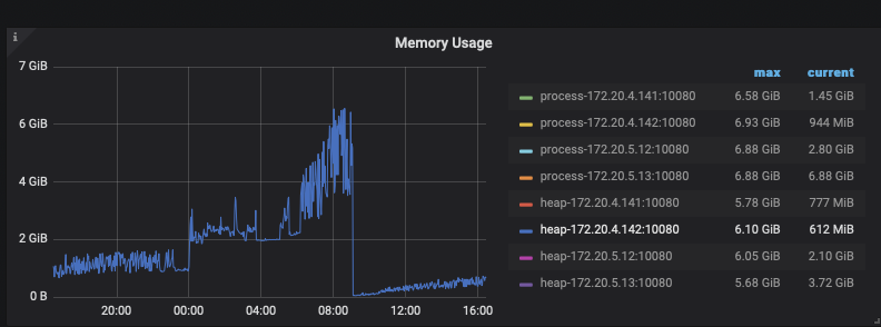 在此期间我们尝试了很多办法,内存限制也从一开始的2G到4G再到现在专用节点,重启频率低了,但问题一直存在,很是难受…