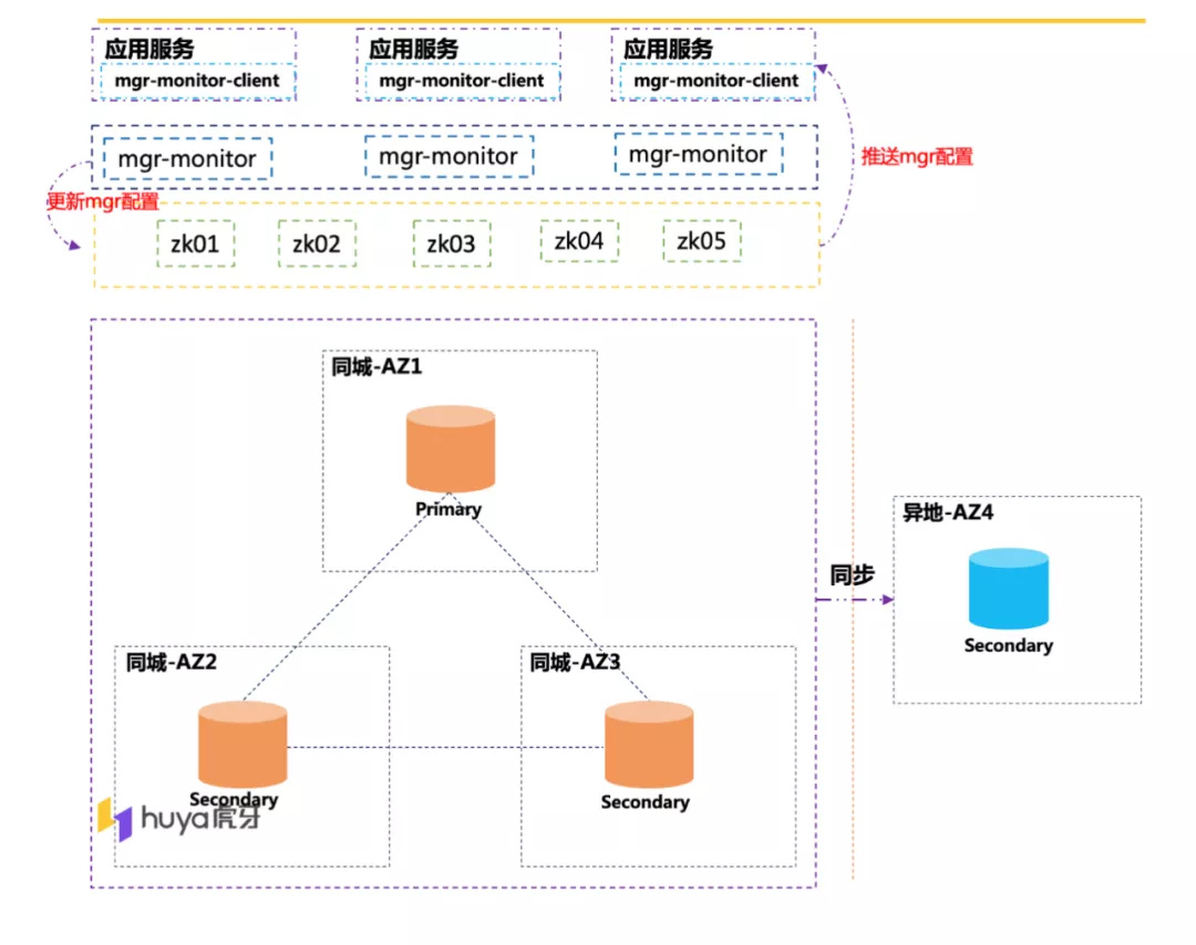 高可用要求 。虎牙直播要求整个数据库的可用性达到 99.99%,为了达到如此高的可用性,虎牙直播做了数据库的同城多 AZ 容灾与异地容灾。