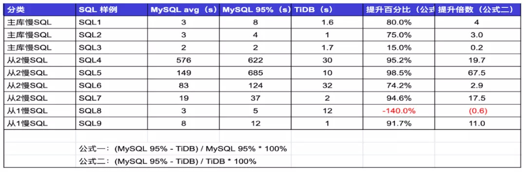 从 MySQL 迁移到 TiDB 后,原先使用的 MySQL 平均耗时 14s,使用 TiDB 后平均耗时下降到 2s,查询的速度提升了七倍。