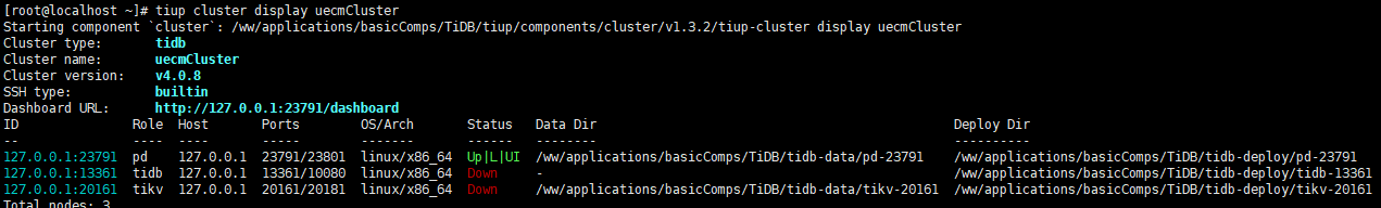 通过TiUP安装的V4.0.8的版本,单机部署 PD,KV,DB组件各一个