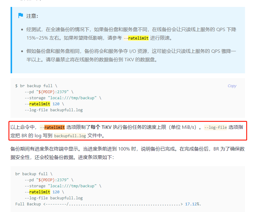 ratelimit 是限制tikv 的~~ ![]()