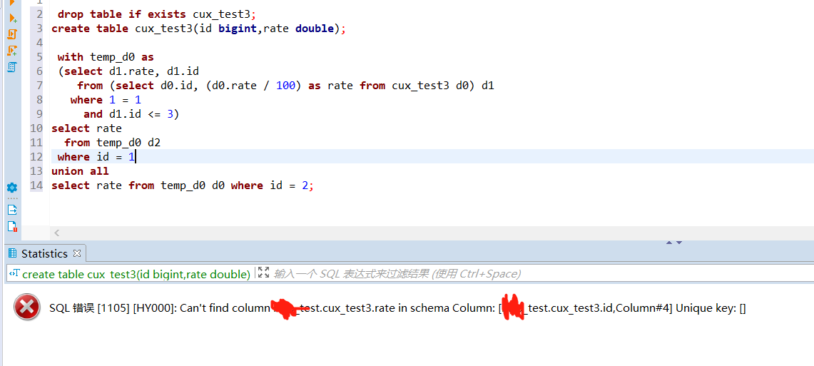 create table cux_test3(id bigint,rate double);