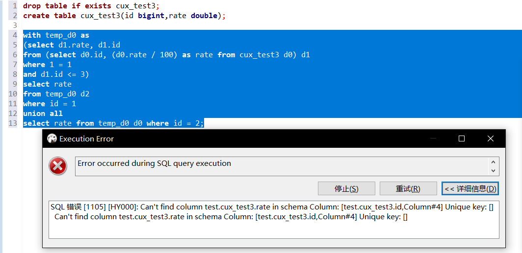 同时使用了with as语法和union all语法时,报错Can’t find column XXXX。