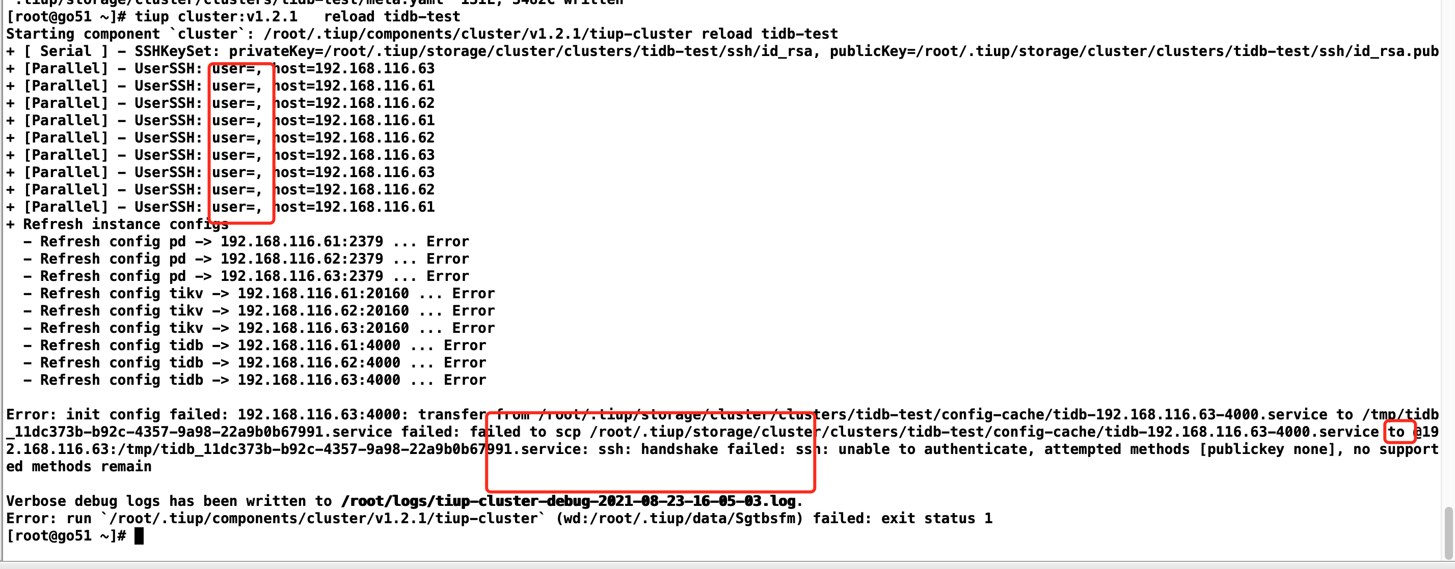 4.tiup cluster:v1.2.1 reload tidb 就出现上面的问题了