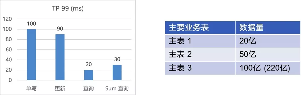 下面我们来看一下京东实际的一个案例,这个是物流业务跟一些费用相关的系统,这个系统的数据量比较大,我们能够看到它的几个主表的数量分别是 20 亿、50 亿和 100 亿,系统上线了半年后数据翻倍到了 220 亿。因为数据量比较大,所以在最开始的时候,采用的就是基于 MySQL 的分库分表架构。在运行了一段时间之后,分库分表的架构就遇到了我们所说过的一些问题,比方说一些复杂的 SQL 不支持,一些跨分片统计报表难于实现等等。经过调研、测试之后,我们决定把这个数据库从 MySQL 切换到 TiDB。