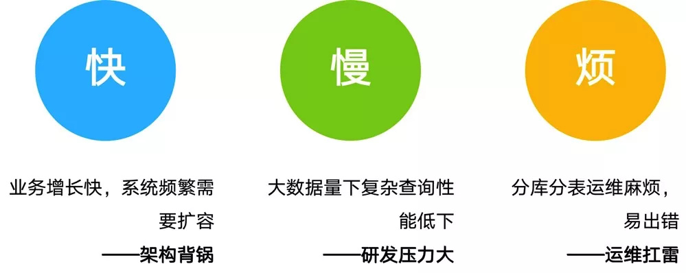 随着京东业务发展的快速发展,数据量的增长也越来越快,带来了几个方面的挑战: 第一,快。 业务增长快、数据量增长快,系统频繁需要扩容,每次扩容都比较麻烦,从资源申请的流程到风险评估,预案的准备以及跟业务方的沟通等,给我们的架构师带来了不少麻烦。 第二, 慢。 随着数据量的增加以及业务复杂度的上涨,SQL 查询的效率变得越来越低,研发需要持续不断地对系统进行优化,这给研发也造成了比较大的压力。 第三,烦。 为了解决数据量的问题,不少系统采用了分库分表的方式,但是这种架构运维比较繁琐而且容易出错,这个时候,运维踩雷可能性就急剧地上升了。