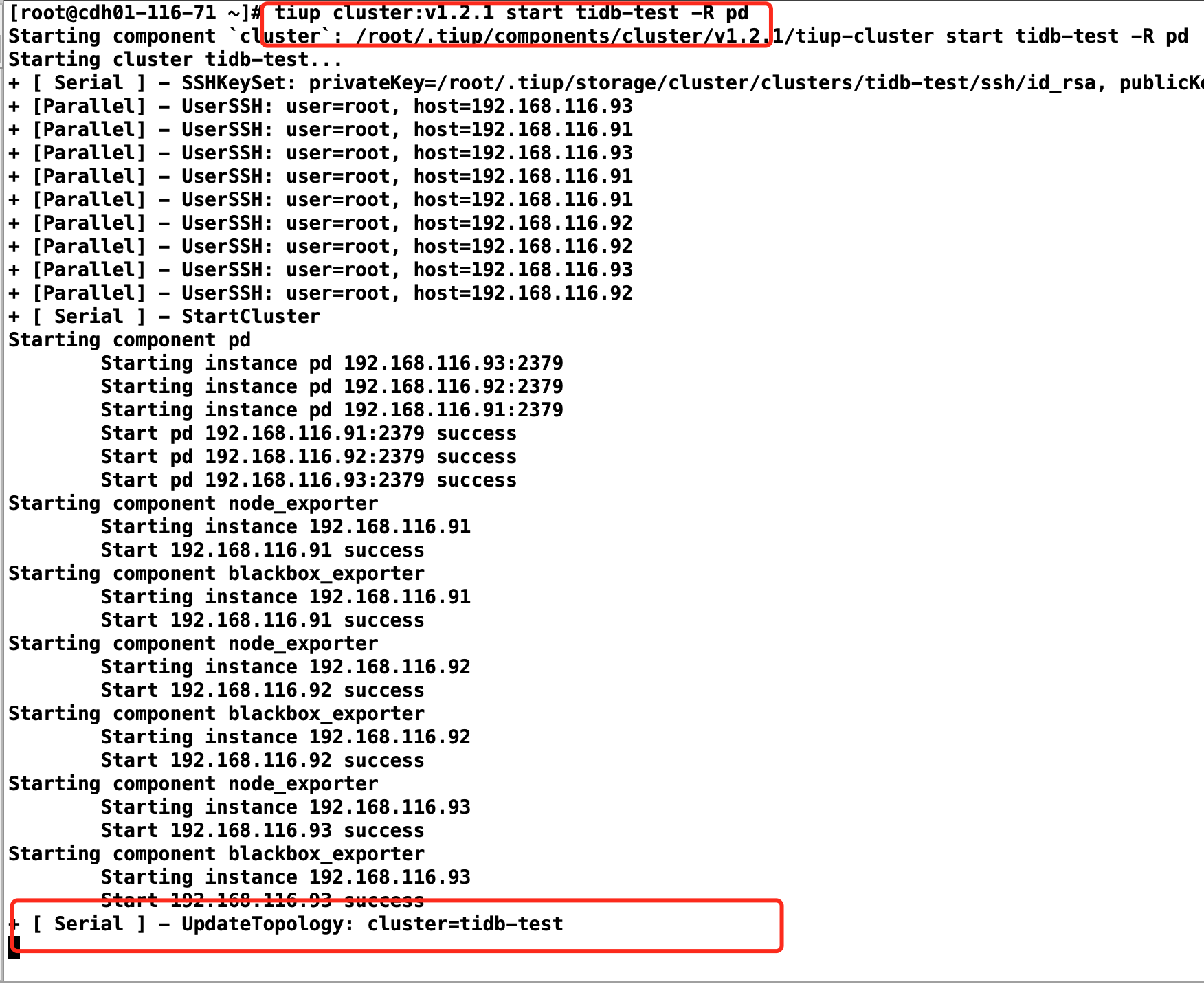 3.tiup cluster:v1.2.1 start tidb-test