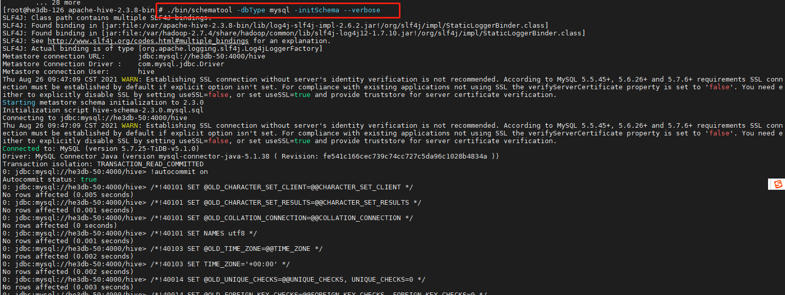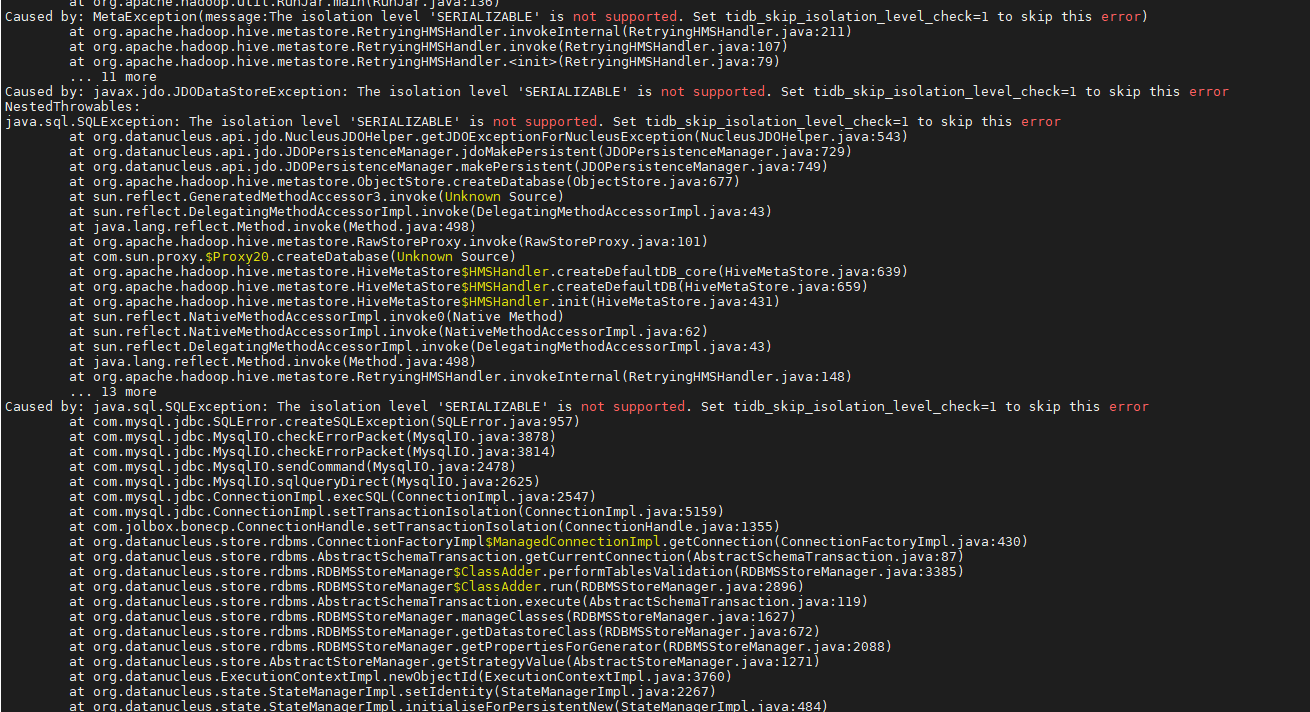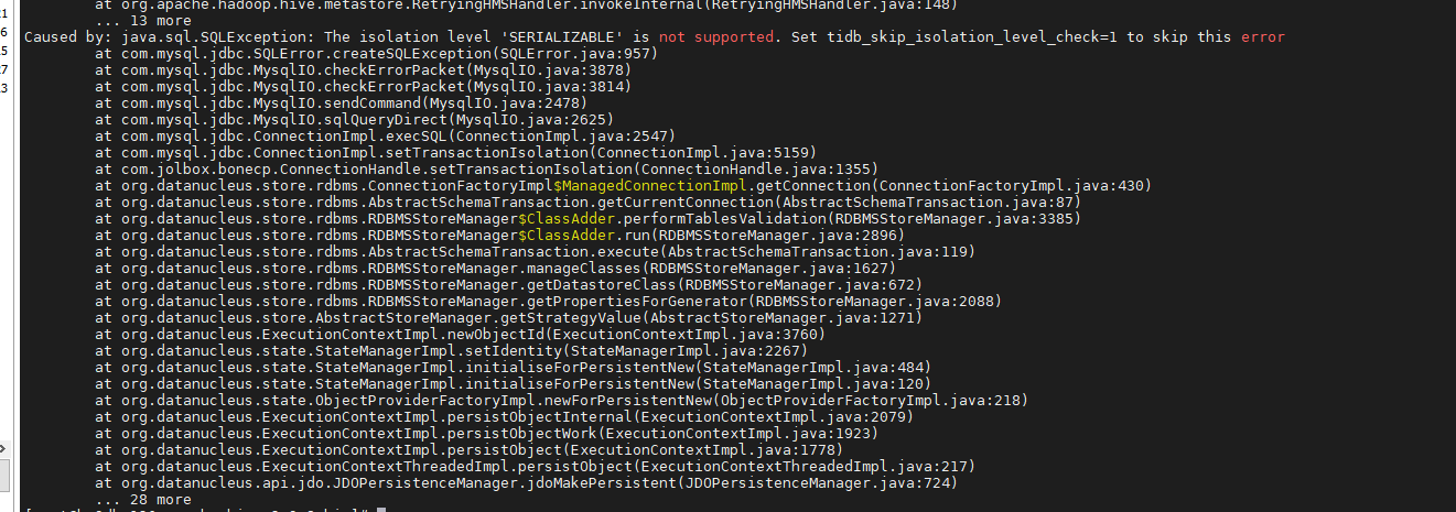 hive元数据使用tidb jdbc形式启动报错