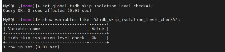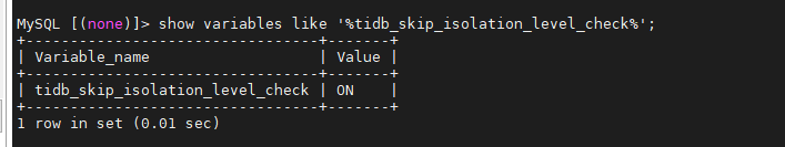 按照报错的提示,设置了tidb_skip_isolation_level_check=1