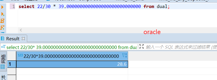 select 22/30 * 39.0000000000000000000000000000 from dual;