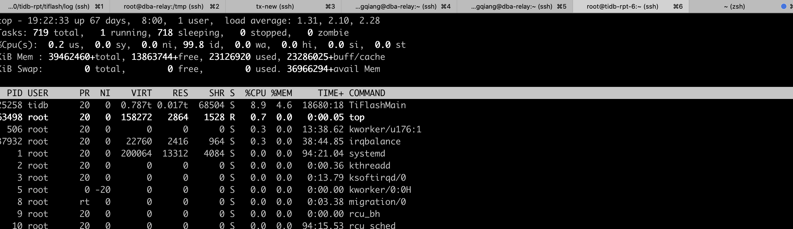 1.从监控中看 183 tiflash 和其他 tiflash 节点已使用空间相差不大,读写的请求也没有太大差别,但 CPU 和 内存使用情况确实差异很大,麻烦反馈下 183 服务器上的 top 结果,确认下是否是 tiflash 进程引起的;