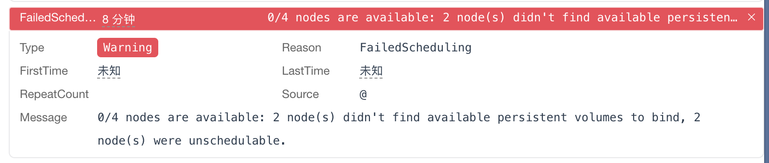 0/4 nodes are available: 2 node(s) didn’t find available persistent volumes to bind, 2 node(s) were unschedulable.
