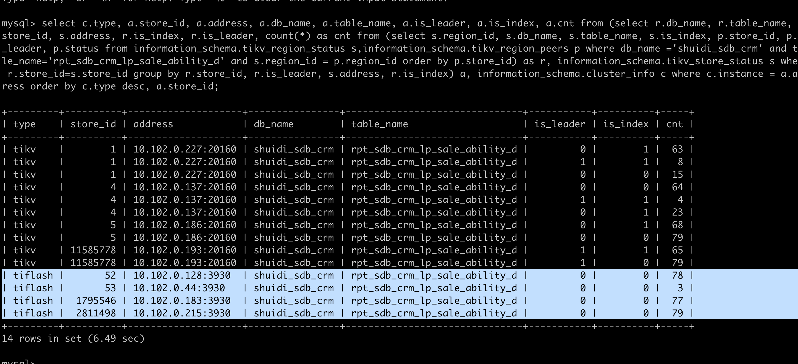 【背景】 9.14号凌晨把tiflash表从2副本,改成3副本