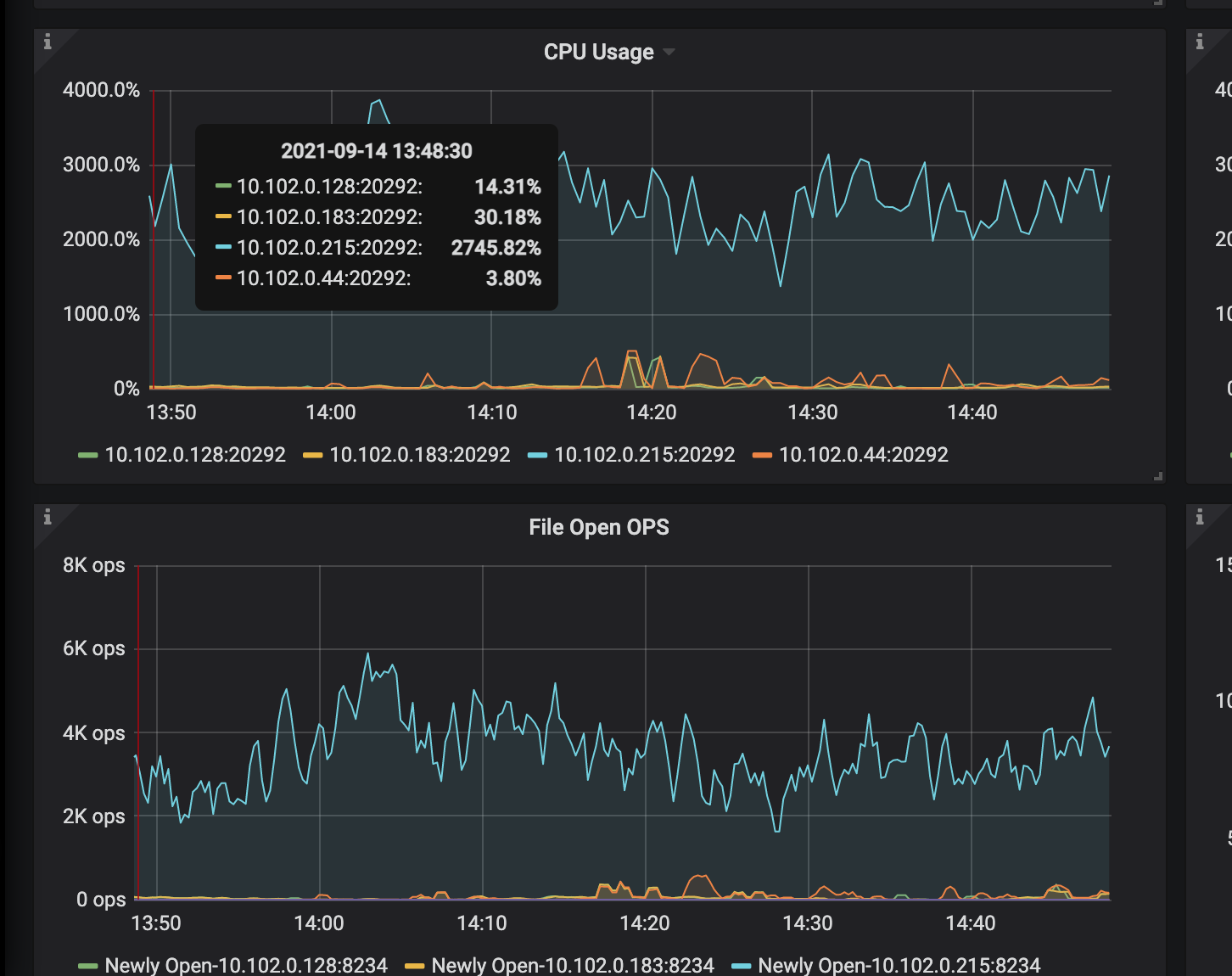 从上面的监控中看好像也不是固定的两个 tiflash 节点 CPU 冲高,你这边观察到的是随机节点 CPU 会发生冲高吗
