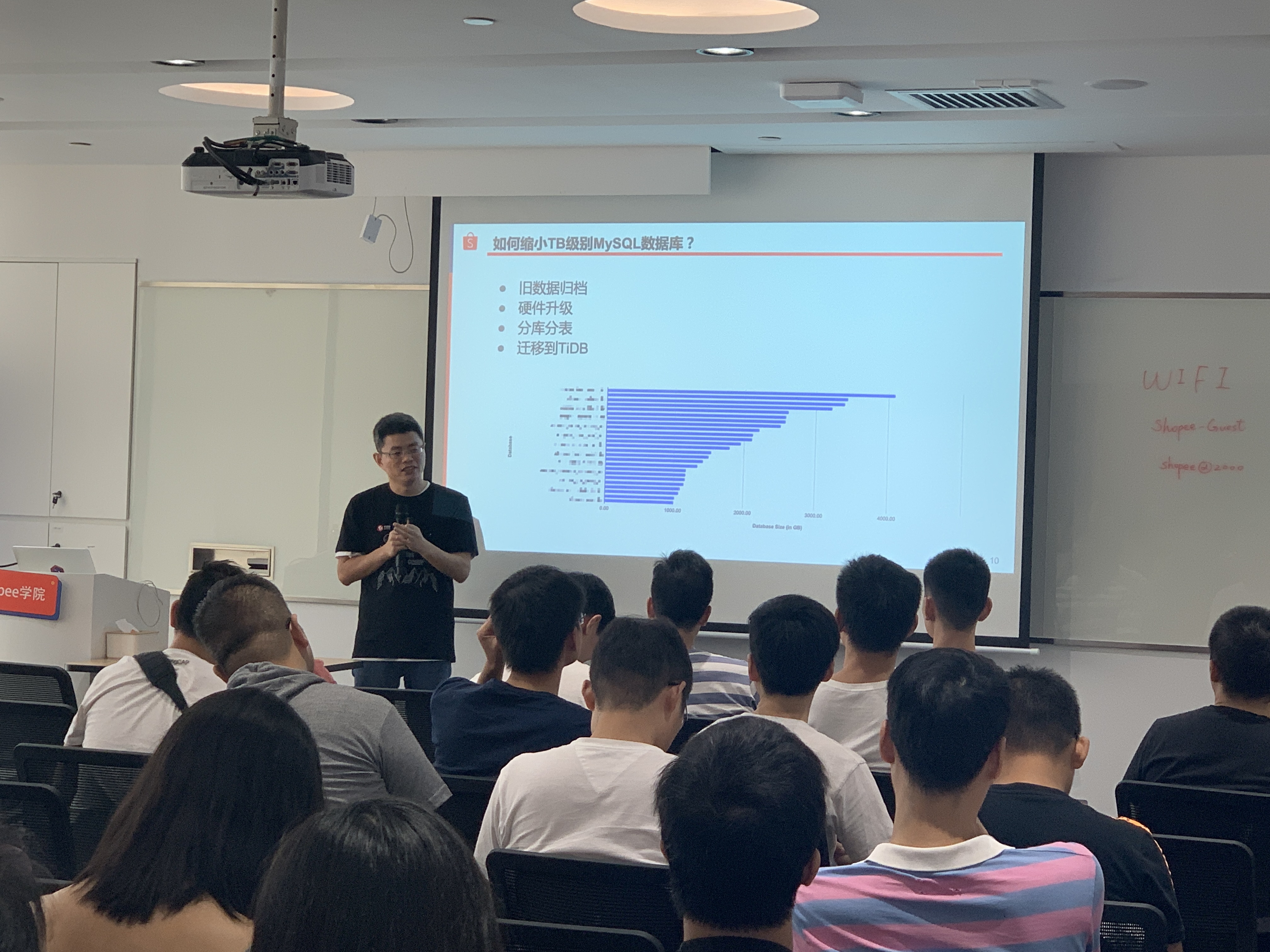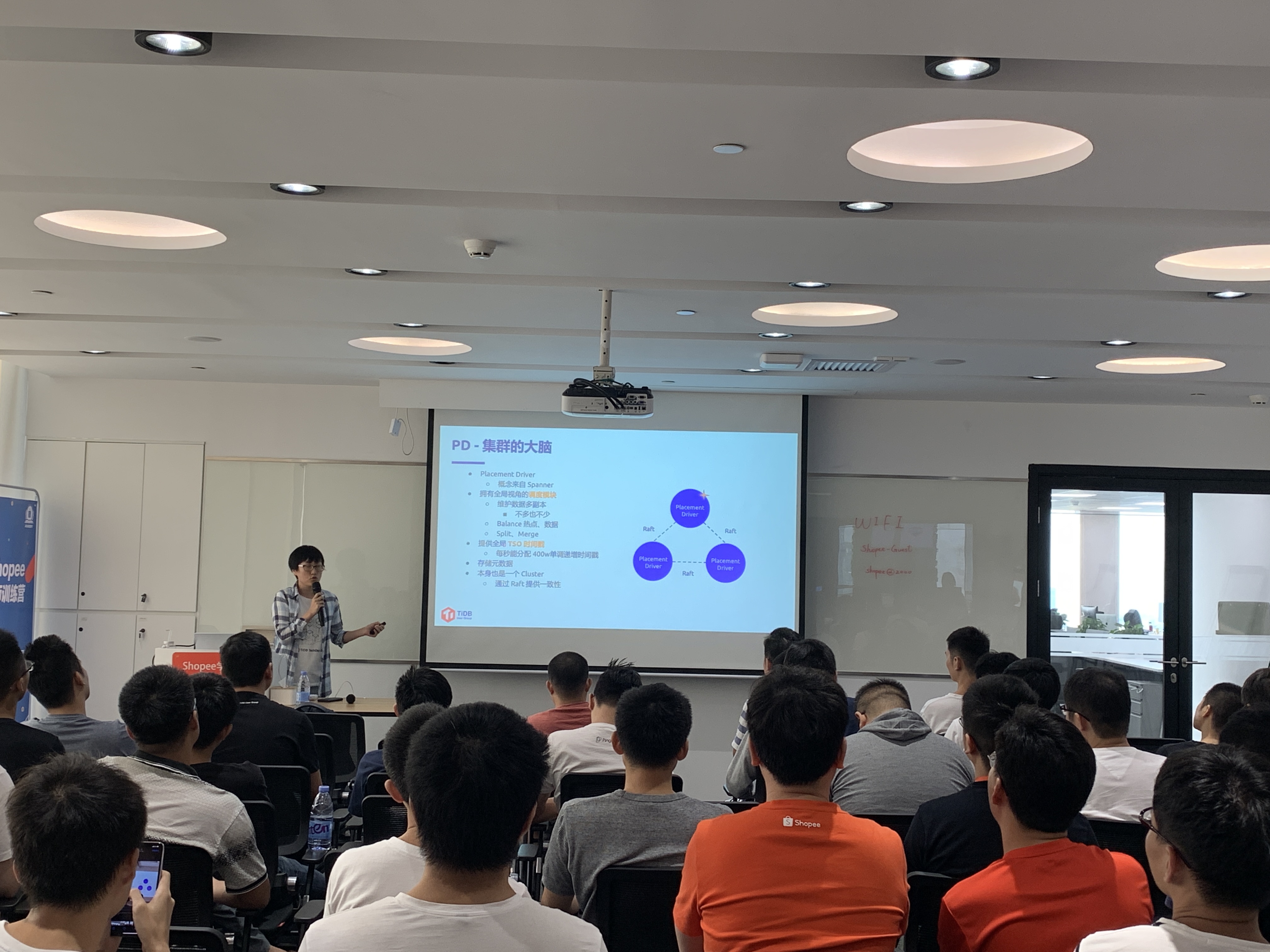 虽然是周日,华南的同学们学习热情依然高涨,Shopee 的会议室迎来了 70 多位来自深圳不同企业的伙伴。活动邀请了 Shopee 的 DBA Lead & TUG Ambassador 刘春辉老师和 TiDB DBA & TUG Member 洪超老师,网易互娱计费组的高级 DBA & TUG Ambassador 李文杰老师和 PingCAP 的互联网架构师李坤老师前来分享。