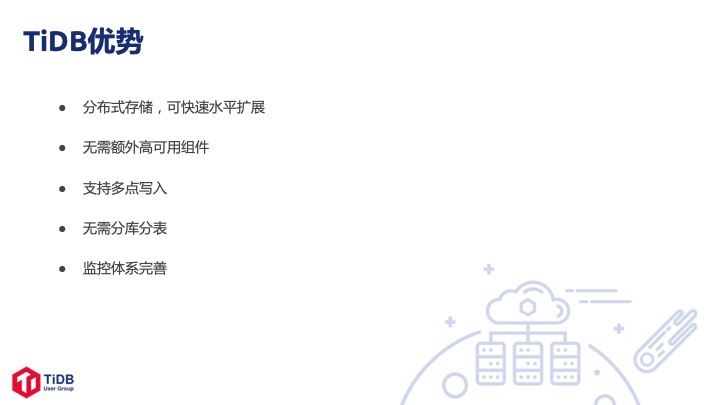 - 最后 TiDB 提供了分库分表的聚合方案,它的监控体系也比较完善,不需要额外搭建监控体系。