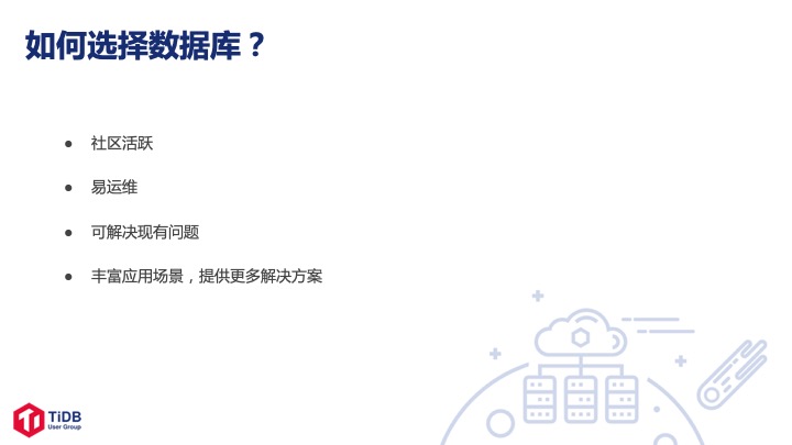 于是我们选择了 NewSQL 数据库的代表 TiDB 来解决这些问题。
