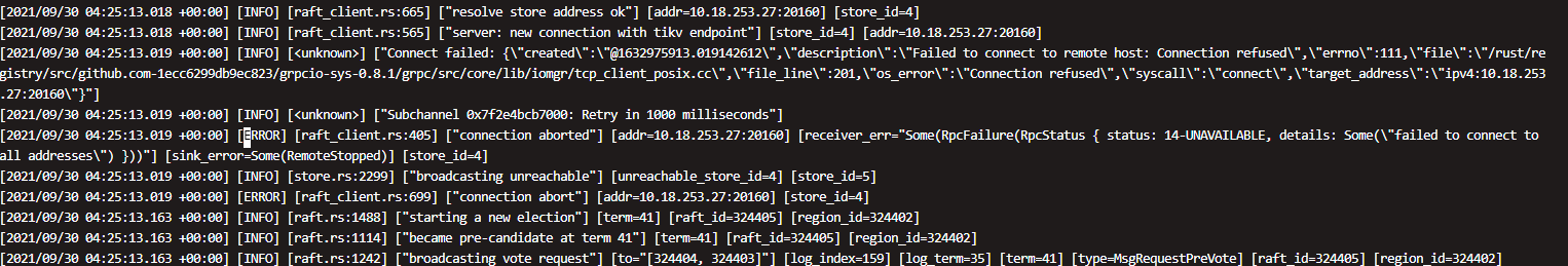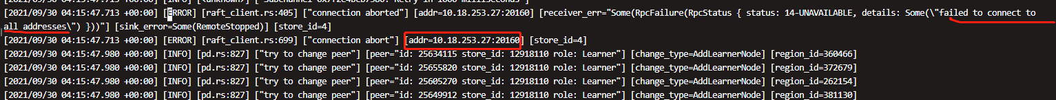 在补副本的过程中,tikv一直在尝试连接那两个下线的tikv节点,导致tikv目前不提供服务了,是不是有region丢失了,可是3副本,也没强制下线,我是先补的副本,为什么会有region不可用了呢,查了下没有 无leader的region
