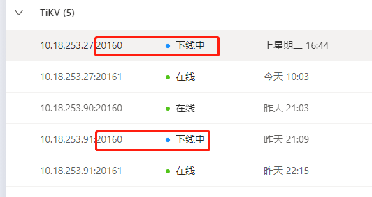 2.通过 pd-ctl 看下两个处于下线状态的 store ,看下 region_count 和 leader_count 有无减少;