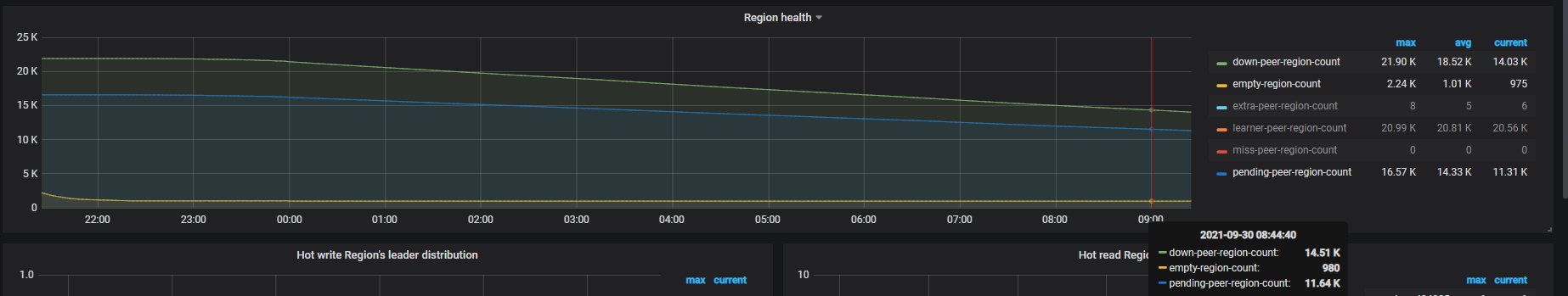 我把pd配置能调大的都调大了,感觉调度好慢啊,12个小时就调度了这些,这还是集群一个任务都没跑的情况下,把这些参数调很大了,cpu,内存,io都还很小,感觉这些参数没起到啥作用。。