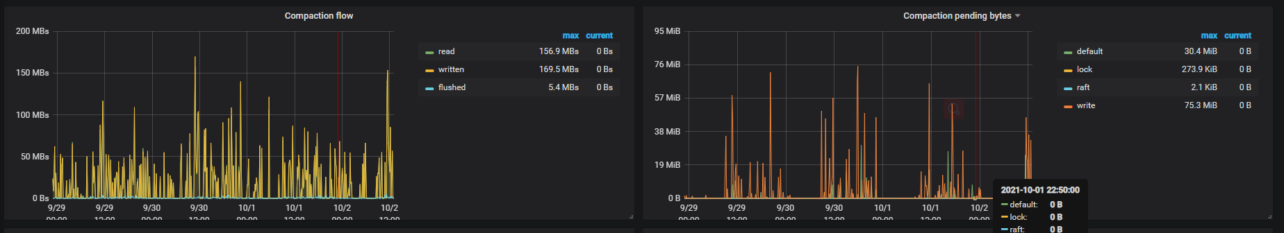 compaction 相关的监控,可以在 TiKV-Details → RocksDB KV 里面找到,参照官方文档: