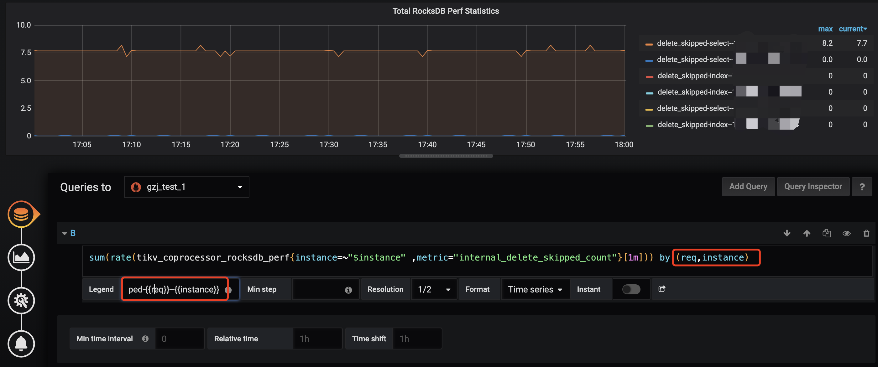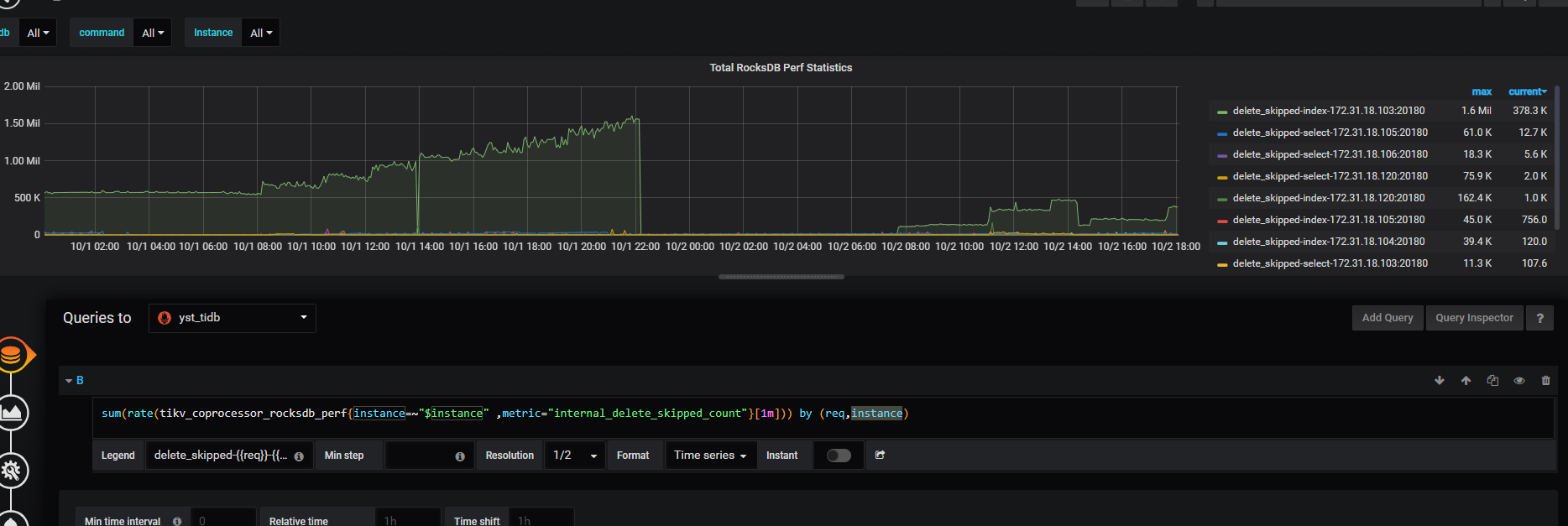 看下 tikv-details 的 Total RocksDB Perf Statistics 每个 store 的情况是否有非常大的差异,需要修改公式参考: