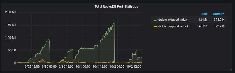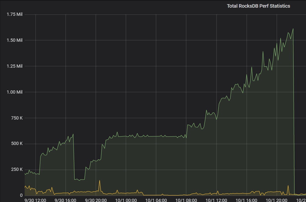 在晚上9点到10点监控发现sql延迟变高,但是qps并没有上升,业务量也没有很大的变化,排查发现rockdb一个指标有点异常