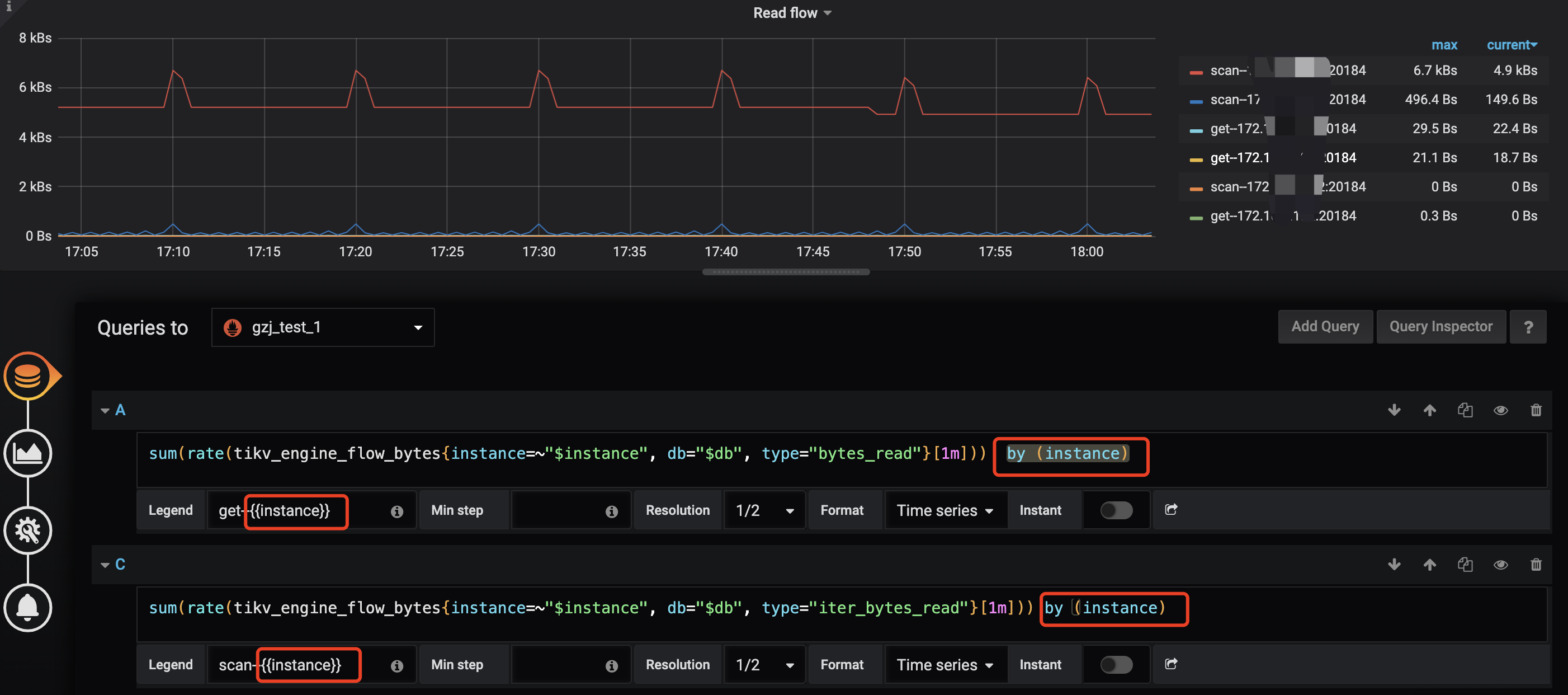 看下 tikv-details → RocksDB kv 下的 read flow by store instance 的情况是否有非常大的差异,需要修改公式参考: