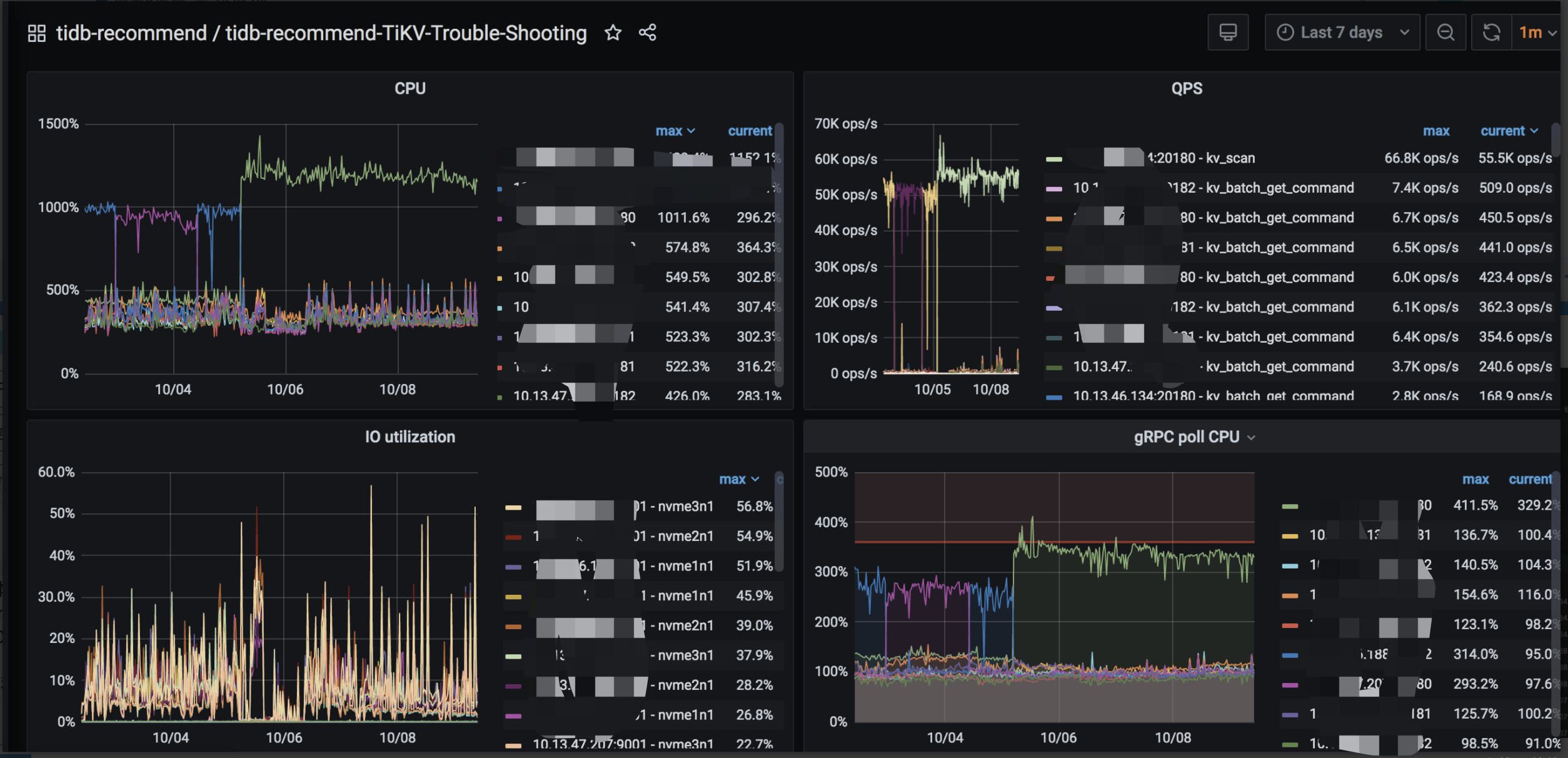 134 这个 tikv 存在明显热点。 存在大量 kv scan 排查下 大的慢查询