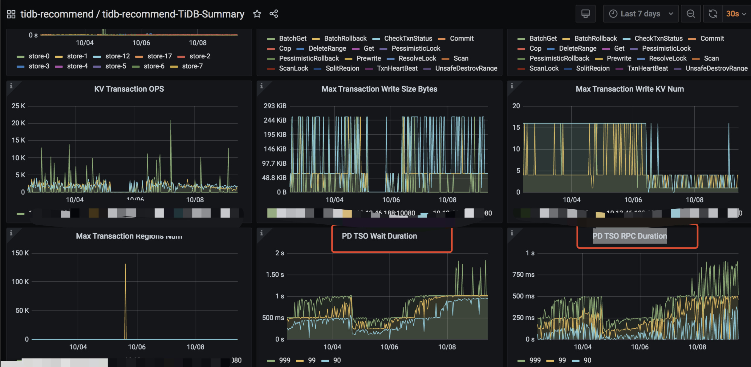 【概述】国庆期间tidb写入明显较慢,耗时增长2倍;查看graff监控,发现duration和PD TSO RPC Duration都增长较多