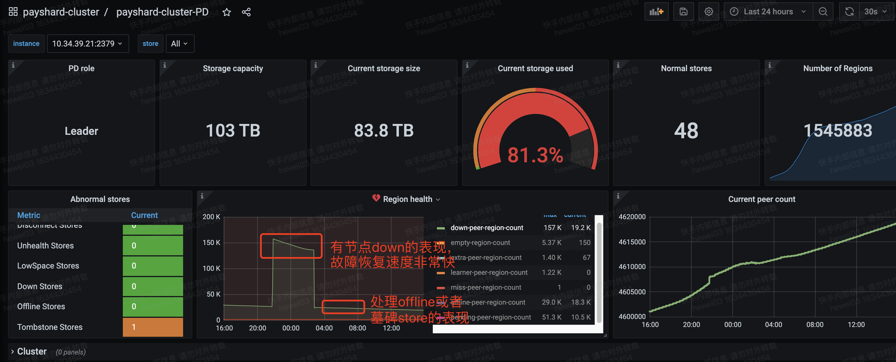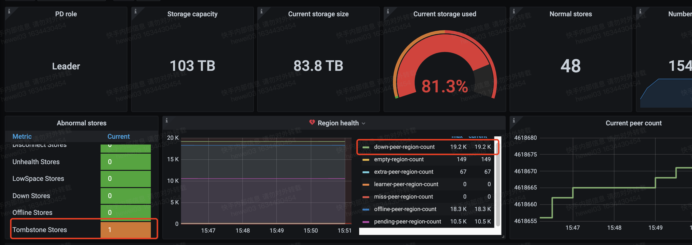 另外我有一个小疑问,为什么监控中墓碑store的数量是1,我把所有的墓碑的store都按照官方的操作处理了。需要说明的这个store所在的节点是活着的。