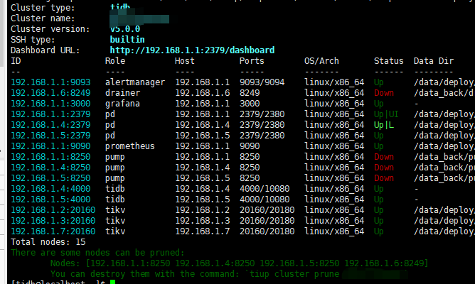 【概述】 通过tiup cluster xxxx scale-in --node xxxx后,drainer和dump节点状态一直是down,是否可以执行prune操作?谢谢!