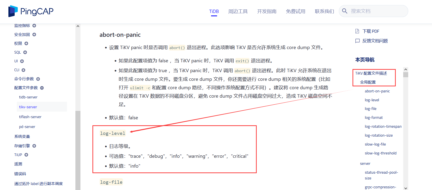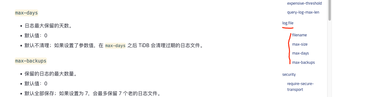 这个层级关系,在官方文档中都有展示:(https://docs.pingcap.com/zh/tidb/stable/tidb-configuration-file#logfile)