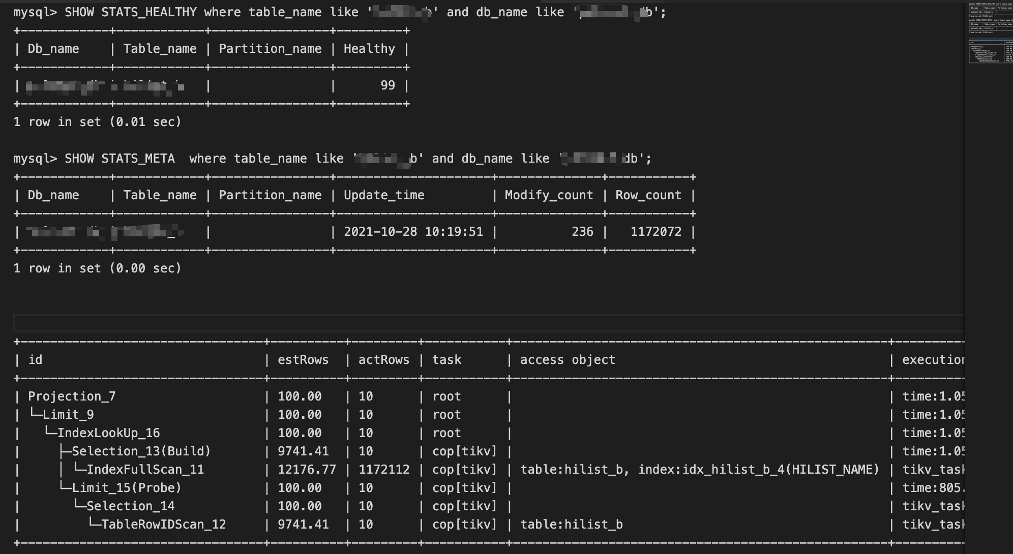 SHOW STATS_HEALTHY 看下目标表的健康度