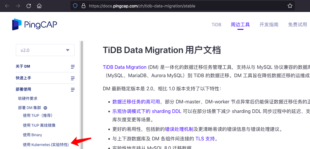 此页面显示为“实验特性”: https://docs.pingcap.com/zh/tidb-data-migration/stable