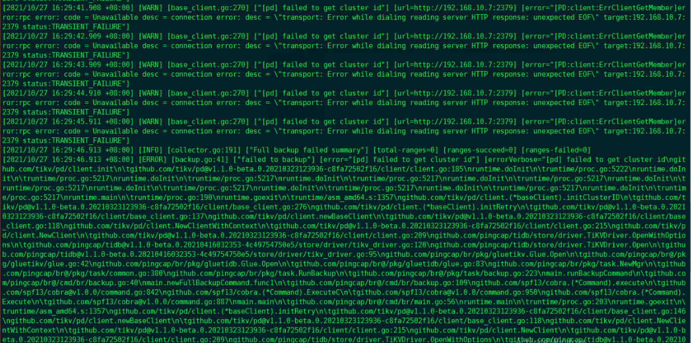 执行br 备份全库操作时错误: