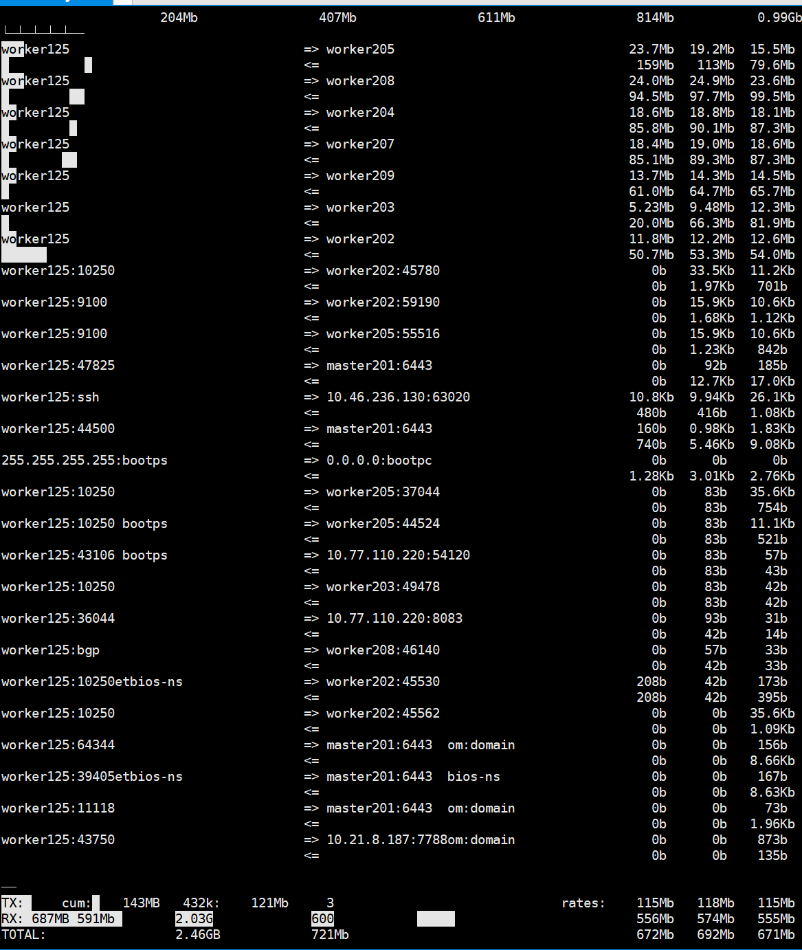 是这样,有个问题是,我现在部署都是在k8s上面部署的tikv节点和flink节点,那我用iftop命令监控实时网络的时候,是检测哪个网卡呢,对外访问服务器Ip的那个网卡吗