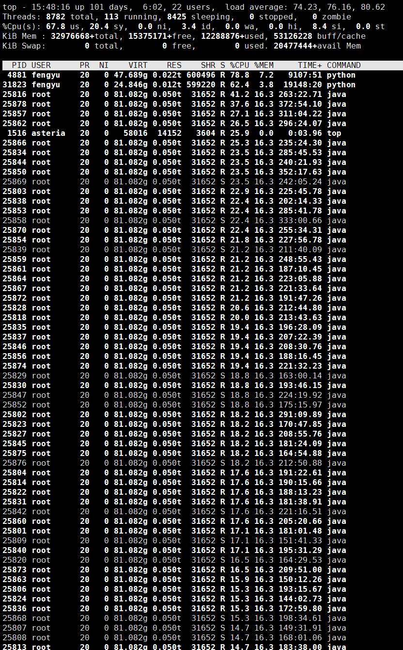 这是每个tm开100slot时候的cpu使用量,现在有个奇怪的问题是,如果集群里只部署一个tm,这个tm的cpu使用量明显提高,平均不低于30,然后grafana命令最高也能达到下面的情况