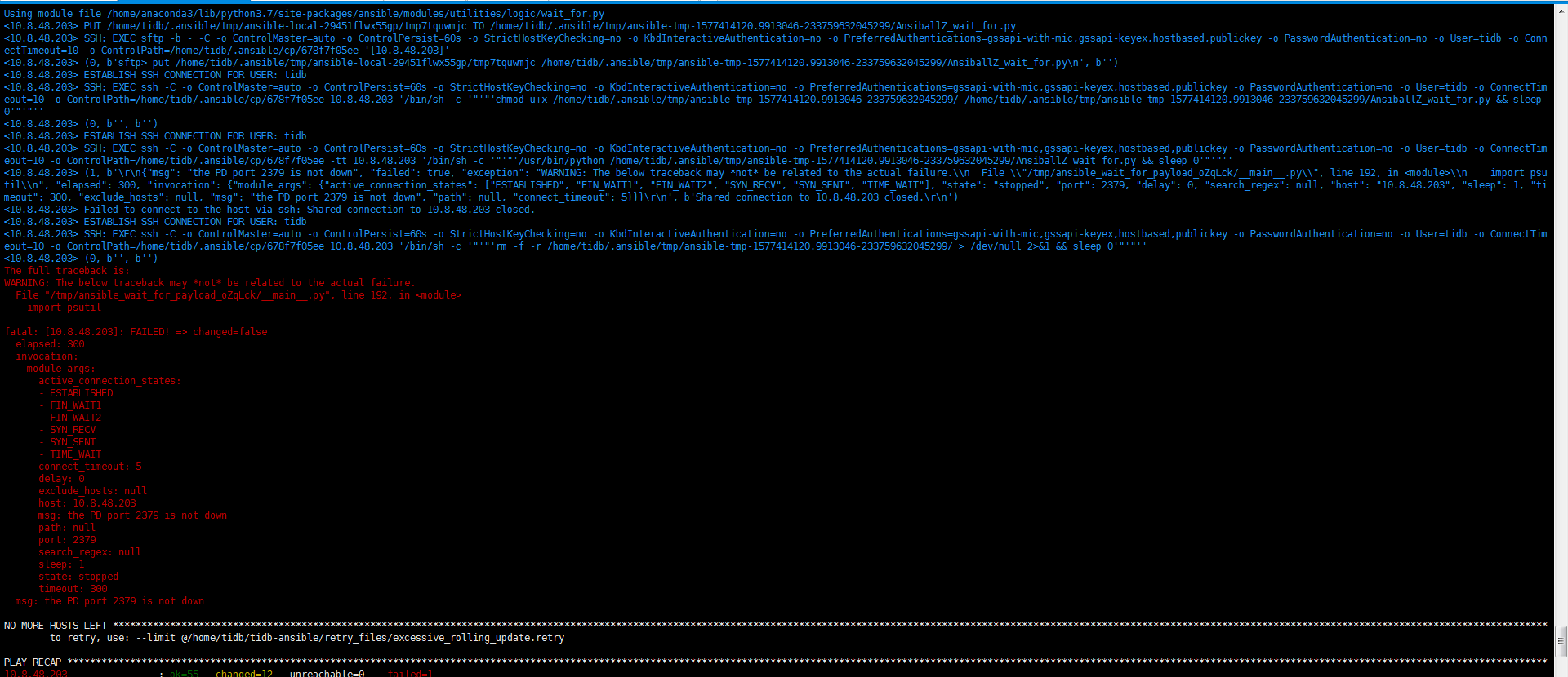 2019-12-26 16:43:42,346 p=11160 u=tidb | fatal: [10.8.48.205]: FAILED! => changed=false