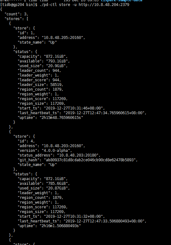 可以通过一下操作分别验证 tikv 的状态是否返回正常: