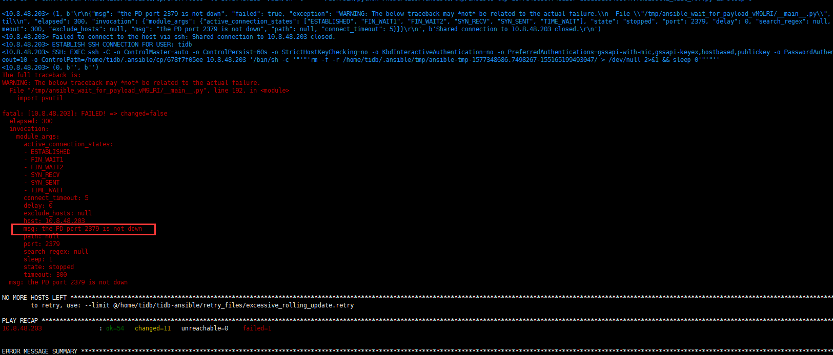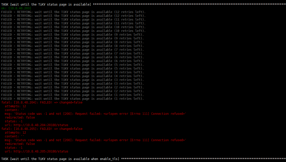 2019-12-26 16:43:42,043 p=11160 u=tidb | fatal: [10.8.48.204]: FAILED! => changed=false