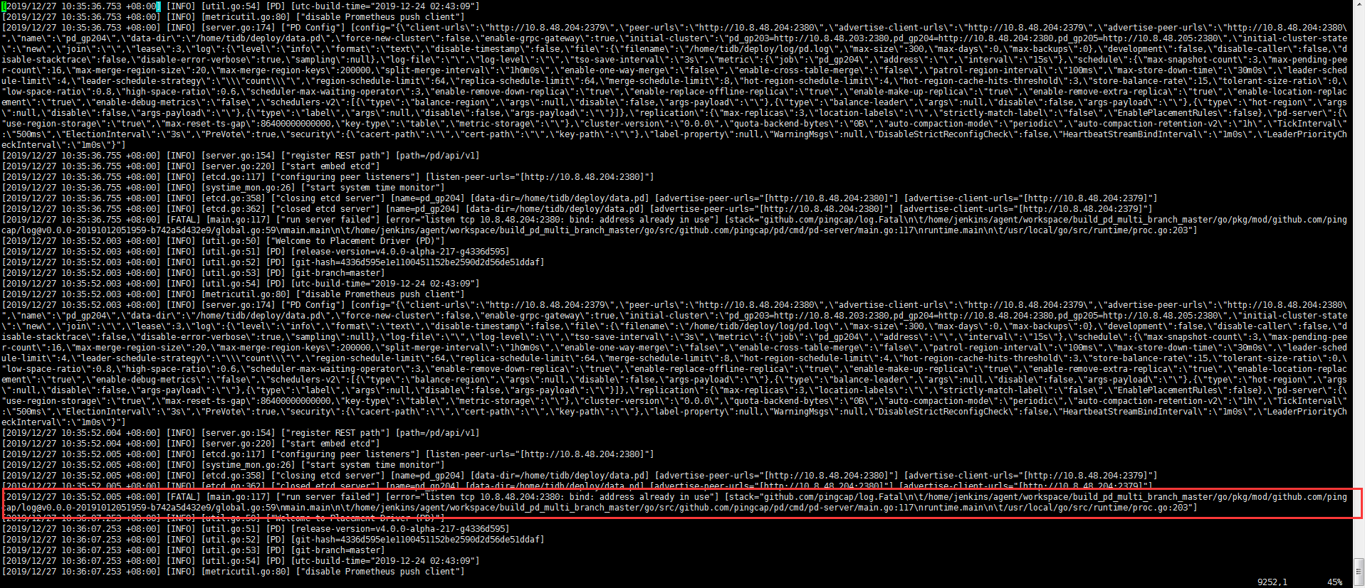 2、检查下各个 pd 服务器 2380 端口的占用情况