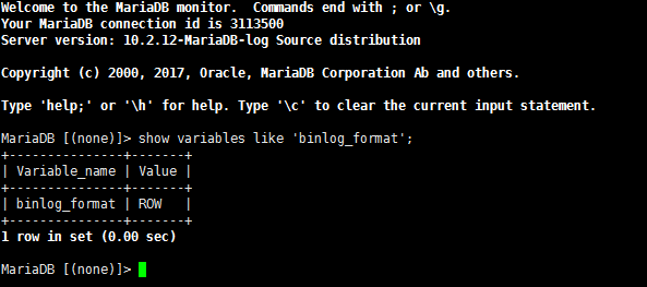源mariadb数据库的binlog模式为row,这个是row格式是在使用mydumper备份之前修改的